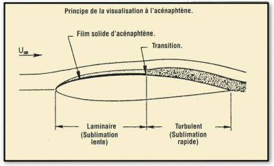 La technique qui utilise la sublimation (passage direct de l’état solide à l’état gazeux) de composants chimiques permet de repérer les zones d’écoulements laminaires et turbulents.