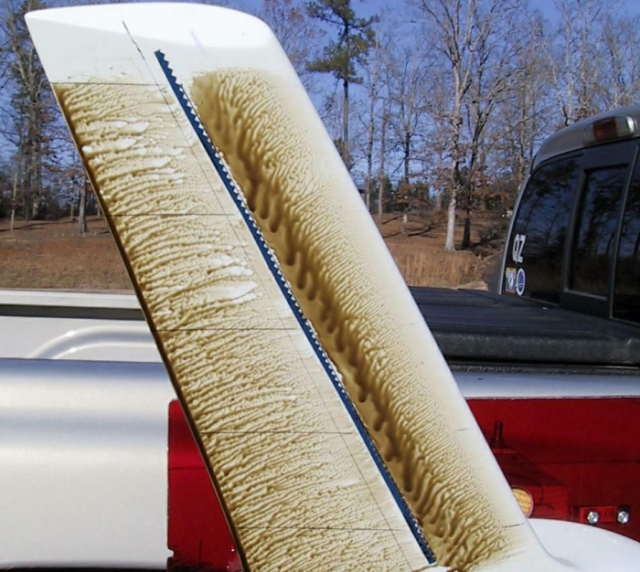 Aile droite après un vol à 130 km/h avec des turbulateurs temporaires
