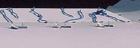 Sans vortillons l’écoulement de la couche limite sur l’aileron était longitudinal à 100 nœuds et stagnant dans le sens de l’envergure à 60 nœuds en aval de la ligne d’articulation de l’aileron.