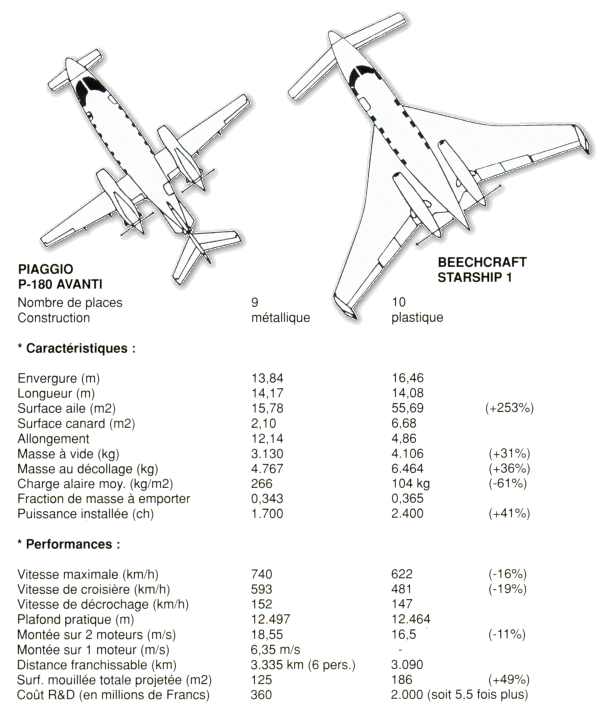 Alors qu’il prétend à un état de surface parfait par l’utilisation des composites, B. Rutan n’a pas utilisé les développements les plus récents de l’aérodynamique en matière de couche limite laminaire pour sa dernière réalisation (le Starship 1). On sait d’après ses aveux que les performances sont le dernier de ses soucis et que "l’avenir est au canard", ce qui semble étrange dans le domaine professionnel, car son concurrent direct (le Piaggio P-180) qui vise le même créneau et qui s’est appliqué à "laminariser" ses ailes et une partie non négligeable de son fuselage, vole, lui, à près de 100 km/h plus vite que le Starship 1 (740 contre 652 km/h) avec une puissance plus faible de 27,2% (1600 ch. contre 2200 ch. pour le Starship 1) et ce pour un prix de recherche et de développement de 5,5 fois moindre (200 milliards de centimes pour le Starship 1 contre 36 milliards pour le Piaggio). On ne peut que s’incliner devant tant de compétence...