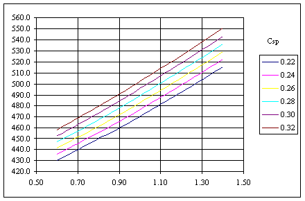 En se basant sur un avion de type VLA, on procède à l’exploration par variation des paramètres moteur influents, c’est-à-dire la masse par unité de puissance et la consommation spécifique Csp. Les valeurs adoptées sont les suivantes :