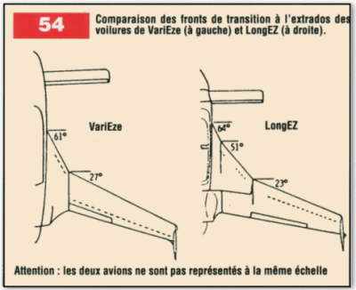 Une comparaison des fronts intrados et extrados entre un LongEZ et un VariEze est présentée sur la figure 54. l’influence de la flèche prononcée sur l’apex entraîne une transition précoce (résultat prévisible), par contre le résultat obtenu (transition très en aval) sur la partie externe du VariEze est plus difficilement explicable.