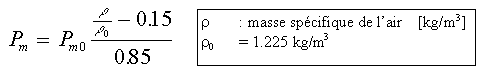 Cette puissance délivrée au régime N relevé en vol est la puissance que délivrerait le moteur au niveau de la mer. Il faut donc encore pratiquer une correction altimétrique pour obtenir la puissance Pm effective délivrée par le moteur au régime N et à l’altitude considérée. La correction altimétrique est faite de la façon suivante :
