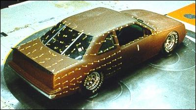 L’utilisation très facile de fils de laine scotchés sur les carrosseries permet, pour un coût dérisoire, de traquer les décollements générateurs de traînées de culot.