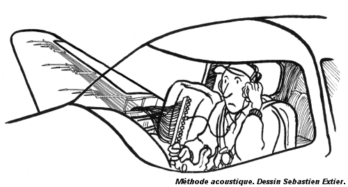 Cette méthode complémentaire des observation d’huile et de naphtalène permet de détecter en direct les variations de positions de la transition laminaire/turbulent. On peut ainsi étudier l’influence de la pluie, du brouillard ou des insectes sur la couche laminaire. La technique consiste à écouter la couche limite par l’intermédiaire de capteurs de pression totale. La couche laminaire étant bien plus silencieuse que la couche turbulente, on peut identifier la zone de transition.