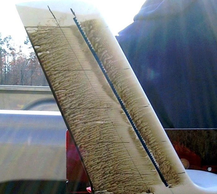 Aile droite après un vol à 130 km/h avec des turbulateurs temporaires