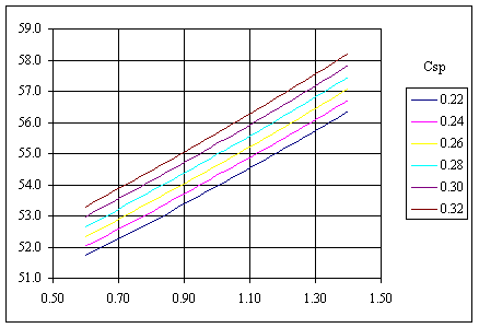 En se basant sur un avion de type VLA, on procède à l’exploration par variation des paramètres moteur influents, c’est-à-dire la masse par unité de puissance et la consommation spécifique Csp. Les valeurs adoptées sont les suivantes :