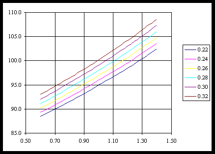 Ces coefficients sont obtenus à partir de moteurs à pistons de référence en fonction des différents taux de compression $\varepsilon$ et des formulations ci-dessus. L’évaluation ayant été établie sur des moteurs 4 temps correctement réglés, on peut estimer que $\lambda$ =$\lambda$ L=1. On obtient alors :