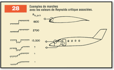 Ce résultat très conservateur, la transition étant obtenue bien en aval pour une valeur donnée de Reh critique (nombre de Reynolds calculé sur la hauteur de la marche "h") doit permettre au concepteur de déterminer avec une marge suffisante les hauteurs de désaffleurement admissibles sur les surfaces à potentiel laminaire.