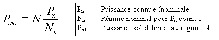 Si les courbes moteurs ne sont pas disponibles, il faut au moins disposer d’une puissance et d’un régime auquel cette puissance est atteinte (ce sont en général la puissance nominale Pn pour le régime nominal Nn, car sachant que la puissance plein gaz est pratiquement proportionnelle au régime, on pourra déterminer Pmo de la façon suivante avec une précision d’autant meilleure que le régime N de vol est proche du régime nominal Nn :