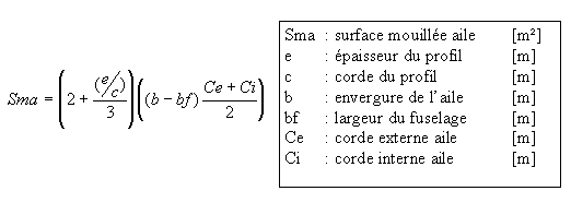 b) Surface mouillée des surfaces portantes :